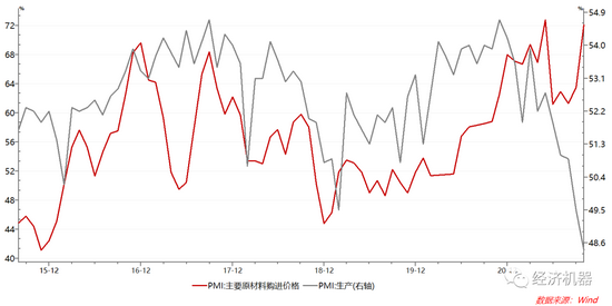 上周,官方PMI公布,制造业PMI为49.2,连续2个月低于50分界线以下,连续7个月出现放缓。分项中,生产、订单等“量”相关的指标继续下滑,而原材料价格等“价”相关的指标大幅攀升,过去一段时间以来两者持续分化的趋势达到了一个新的水平。