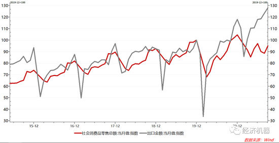 图8:消费复苏远远落户于出口复苏,且复苏近期中止