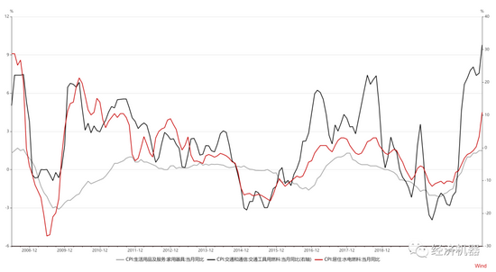 非食品通胀方面,电价在工商企业上浮比例大幅提高,尤其是对高耗能企业用电完全放开,将会推升工商业成本。用电成本在工业中处于最基础的地位,类似于粮食在农业中的作用,用电成本上升,将会加速向终端消费传导。目前水电燃料和家电类涨价迹象明显。此外,由于国际原油价格上涨,最近交通燃料分项同比大幅上涨,幅度超过20%(图17)。