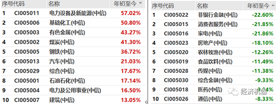 图2、中信一级行业:涨幅前十和跌幅前十