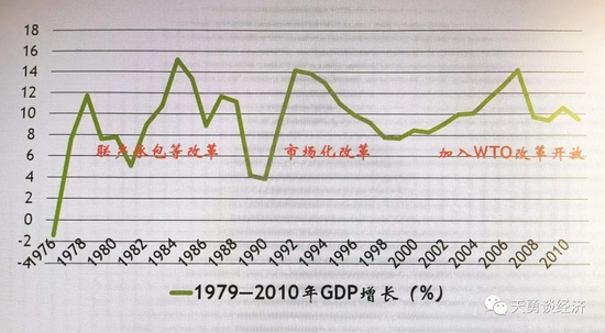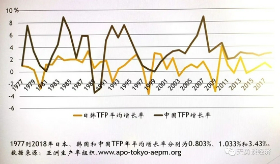 反观中国1978—2018年间的全要素生产率平均增长率为3.43%,比发达国家高了2.5个百分点。但其并不主要是广义技术进步形成的。从阶段上看,TFP高增长,都在是1980—1985年、1991—1995年、2001—2010年大力度改革开放阶段,并形成三个倒V形状。说明,中国过去全要素生产率提高的70%,来自于经济改革对体制扭曲禁锢资源、要素、资产、企业等生产和财富形成能力的释放,而不是什么教科书上所说的广义技术进步。正如党的六中全会总结历史所述,1978年以来,解放思想,实事求是,作出把党和国家工作中心转移到经济建设上来、实行改革开放的历史性决策,推动改革,是中国快速发展的成功经验。