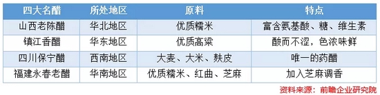 除了酱油外,食醋作为调味品的第二大类,和酱油相比行业公司规模较小,品牌影响力相对有限。食醋发展有区域性的特点,产量结构相对分散。我国各地不同的饮食习惯造就了食醋发展极具本地口味特色,并进而造成食醋割地而据的局面。按照区域看有四大名醋,其原料、生产周期和口味均有不同。