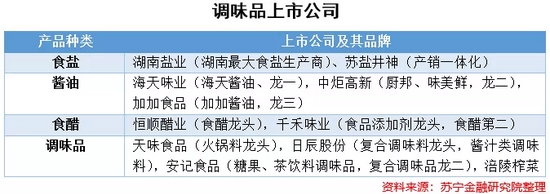 以我们常见调味料食盐、酱油、食醋为例,A股相关上市公司如下: