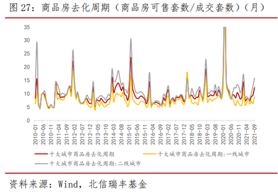 结合竣工高增速可以看出,房企开工主要受制于承压的资金链条,下半年伴随“保交付”政策的推进,预期维稳、商品房销售恢复常态后,房地产库存去化周期趋于下降。