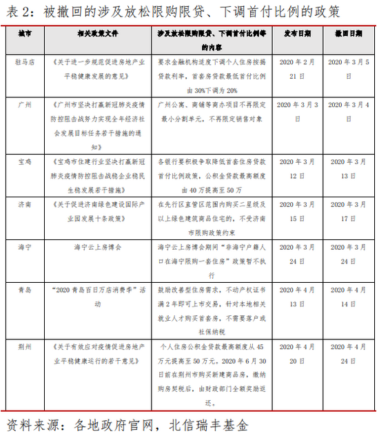 但在此次第四轮房地产周期中,政府的行为逻辑则与前三轮周期体现出了明显的不同。2020年初新冠疫情危机来袭,我国经济承受着巨大的压力。然而政府却并未像前三轮周期中一样放松房地产市场限制以刺激经济,而是坚持住了“房住不炒”的路线,各地方政府凡是涉及放松限购限贷、下调首付比例的政策都遭到了撤回。