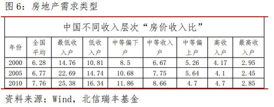 其一,局部地区房地产过度投机现象的出现是“房住不炒”政策出现的直接原因。住房需求按目的可以划分为消费性住房需求、生产性住房需求和投资性住房需求。投资性住房需求中的投机需求是驱动房价脱离实际价值上涨的主要因素。当房地产价格持续上涨,在强烈的房价上涨预期下,住房的投机需求增加。住房投机需求的增加又通过供需机制导致房价进一步上升,房价上升又导致房价上涨预期进一步强化,从而形成一套正反馈机制,促使房地产价格与实际价值相背离。这部分投机需求过度膨胀,不仅会导致房价过快上涨,从而挤出刚需、生产性需求等其他需求,而且会增加房地产市场的脆弱性。因为一旦房价失去上涨预期,投机性购房需求便会迅速减少,导致房价大幅波动,对金融稳定产生不利影响。房价收入比是一个地方或城市家庭年平均总收入与所购房屋的平均价格的比值,常用于衡量房地产市场是否存在投机过度。根据世界银行的统计,如果房价收入比高于6,则意味着房地产市场投机现象较为严重。我国2000年-2010年不同收入群体的房价收入比显示,我国全国平均房价收入比超过6,房地产市场出现了一定的投机现象。
