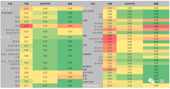 表1:中国FDI限制指数及对比(2019年)