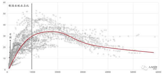 概念在帮助人们理解某些现象的同时,也在掩盖另一些现象。某种意义上,三大产业是一组相对过时的经济学概念,因为制造业与服务业已经深度融合。大量传统的制造型企业也生产服务,一些公司还可能决定专注于服务业而不是制造业。因为,根据“微笑曲线”,上游专利技术和下游的品牌等环节的附加值都高于中游的制造。一个著名的例子是IBM,它已经迅速从制造业转向了服务业,彻底改变了商业模式,这是其能够保持在高科技领域的全球领导地位的关键。在IBM的总销售额中,服务的份额约为60%。类似的案例还有传统的汽车制造商福特,它正在转型成为汽车服务商。随着数字时代的加速推进,制造与服务的融合还将进一步深化。这就是21世纪以来所出现的“制造服务化”的趋势。