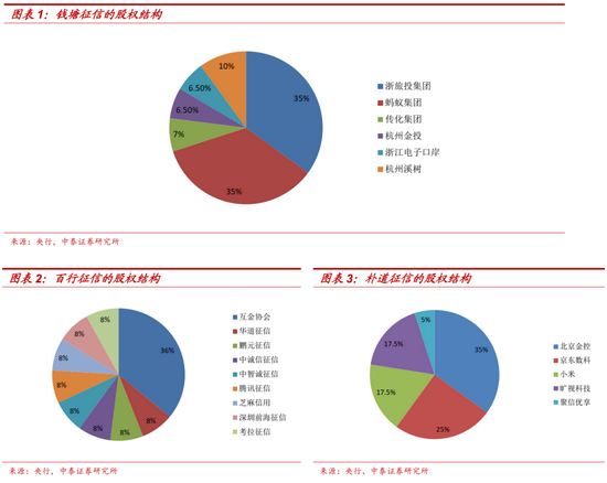 1、民营资本首次与国有资本并列第一大股东。钱塘征信的股东中,浙旅投集团与蚂蚁集团的持股比例均为35%,并列第一大股东,前两张个人征信牌照的第一大股东分别为互金协会(36%)和北京金控(35%),单一民营资本的持股比例提升,此外员工持股平台占比达到10%,表明个人征信牌照公司的市场化程度进一步提升。