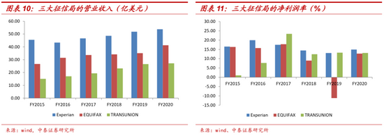 2、个人征信具有公共基础设施的属性,预计基本模块的费率设定会比较低。短期内,新设立的个人征信公司为了拓展上游数据源和下游数据产品客户,需要一段时间的投入,包括以免费或低费率的方式提供服务;中长期来看,基础性的信用数据及评分产品或将以成本覆盖的方式进行定价,个人征信公司可通过开发更高阶的信用评分产品或者提供数据分析服务来拓展收入来源,这部分业务的市场化定价的程度更高。参考国际头部公司的收入模式,依托自身的数据能力,不断丰富数据分析决策类产品,将客户拓展至非金融行业,带动收入持续增长。