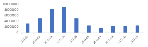 图3 美国单月新增疫苗接种剂次