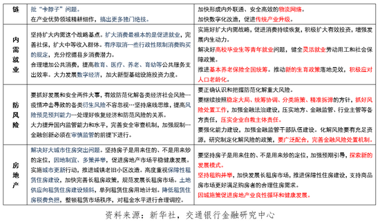 此外还强调政策之间的互动和配合。会议提出财政政策和货币政策“协调联动”,同时强调“跨周期”和“逆周期”的宏观调控政策有机结合,这是关于宏观政策有效实施做出的新的提法和要求。