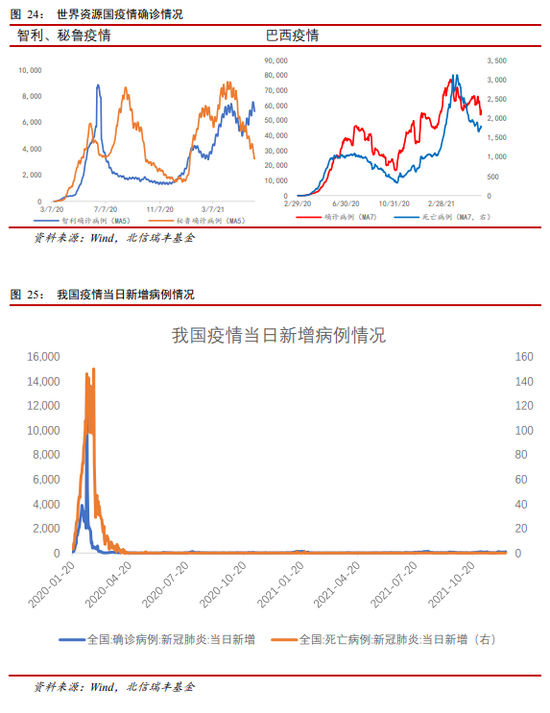 供应方面,部分资源国仍在持续受到疫情影响,部分资源品出口仍然受限,以有色金属如铜的供给为例,南美国家如智利、秘鲁供应占据了全球近40%,但两国受限于疫情控制不佳,影响铜矿出口规模,难以匹配市场增长的需求。另外如巴西等资源出口国疫情延续时间较长,一定程度上影响了全球原材料的供应。