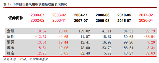 由于供给因素导致2000/7-2002/2和2003/2-2003/11的PPI-CPI下行阶段其经济发展背后有当时我国正加入WTO融入国际市场,国内房地产市场起步,我国经济正在进入重化工阶段,该两阶段可能对现在处于经济转型期的借鉴意义不是太大,我们觉得更有借鉴意义的是2017/2-2020/4这个PPI-CPI下行阶段股市的表现:即关注成长和消费两种风格。