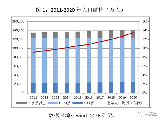 2014年,我国15-64岁劳动人口首次出现负增长(-0.16%),其后逐年减少,2020年劳动人口同比减少1.99%,2011年至2020年,劳动人口在总人口中占比从74.4%降至68.9%。与此同时,65岁以上的老年人口增速与占比却快速攀升,占总人口比重从9.1%提升至13.5%,十年增加了55.2%。