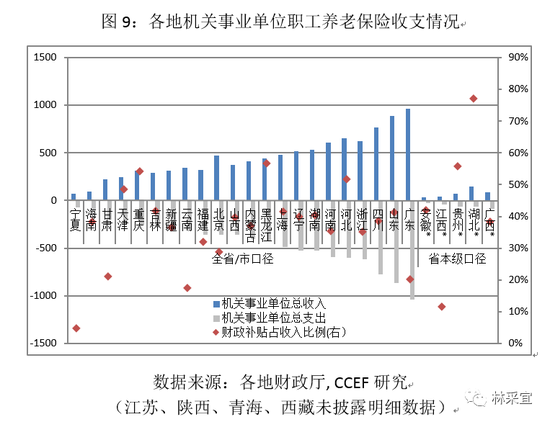 3. 机关事业单位职工养老缺口也是财政补贴的巨大黑洞