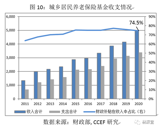 2020年,城乡居民养老保险收到的财政补贴3134.6亿元,而同期企业职工养老保险和机关事业单位职工养老保险分别为6271.3亿元和5448.4亿元。因此,城乡居民养老保险参保人群的实际养老金发放水平也相应低于企业和机关事业单位的退休人员。