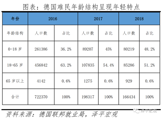 21世纪的难民潮为德国带来大量潜在劳动人口,同时难民人口结构年轻,老龄人口比重低。德国主要通过职业培训、灵活调整就业政策提高难民劳动力转化率。2010年阿拉伯之春爆发、2015年叙利亚、利比亚等中东、北非地区战乱不断,叠加阿富汗塔利班、极端组织“伊斯兰国”猖獗蔓延,使得大批难民不断向欧洲地区涌入。出于人道主义关切和缓解国内劳动力短缺的考量,德国联盟党在难民危机伊始采取“欢迎文化”指导接纳政策,2015 年 8 月,德国决定对于来自叙利亚的难民,无论其之前是否经过第三国抵德,都可申请避难。德国难民数量从 2013 年随着中东战局的持续升级而出现猛增,到 2016 年达到最高峰,一年内收到的避难申请多达 74.5 万人。从年龄结构看,涌入的难民还有年轻化的特征,近三年来进入德国的难民群体青中年比重极大、老龄人口比重非常低,2016-2018年进入德国的难民 65 岁以上的老龄人口仅占 0.6%,18-65 岁的劳动适龄人口占比超50%,与老龄化日趋严重的德国本土国民形成了鲜明的对比。年轻的难民人口若综合素质达标,可以直接成为弥补德国劳动力短缺的“援兵”或后备人才。所以从劳动力供给看,难民危机为德国提供了缓解劳动力短缺的机遇,但适龄人口能否转化为有效劳动人口,还取决于难民的素质和工作技能。因此,在改善难民的就业率方面,德国联邦劳动局、移民与难民局于2001-2016年开展了一系列“融入与多样性”,“每个人都有潜能”,“年轻难民在手工业中的前景”等项目,为发掘难民专业工作能力的潜能。并于2016 年 7 月颁布的《融入法》,规定难民已递交避难申请满三个月获居留资格后,就可以享有获得求职期培训的权利。在递交避难申请满15个月后,可以获得职业培训津贴。根据德国劳动力市场及就业研究所(IAB)研究,2015年有 89 万寻求庇护者抵达德国。他们大多数来自叙利亚、阿富汗或伊拉克,且年龄在 35 岁以下。仅三年后,其中30.7万人在德国找到了工作并支付社会保障金。随着居留时间的延长,五年后该批难民的平均就业率可以达到 50%,十年后可突破 60%,十五年后可达到 70%。