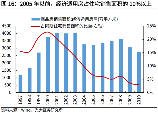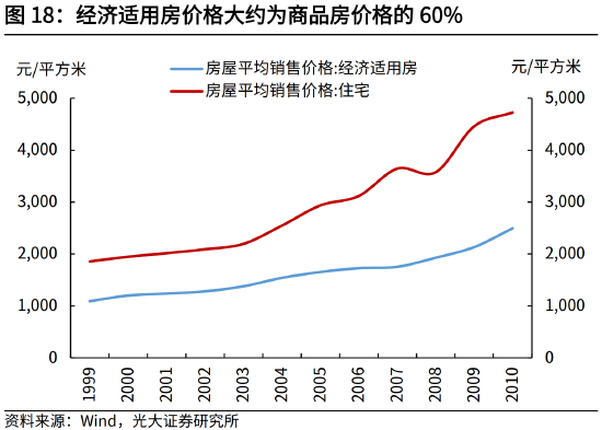 经济适用房是我国最早的配售型保障房,推出目的在于解决城镇居民的住房困难,同时扩内需促进经济增长。一方面,1994年,我国开始提出取消福利分房制度,在住房商品化背景下,以政府指导价向拥有城镇户籍的中低收入家庭出售经济适用房,有助于解决其住房困难问题。另一方面,1998年亚洲金融危机发生,我国也希望通过建设经济适用房,扩大内需刺激经济增长。