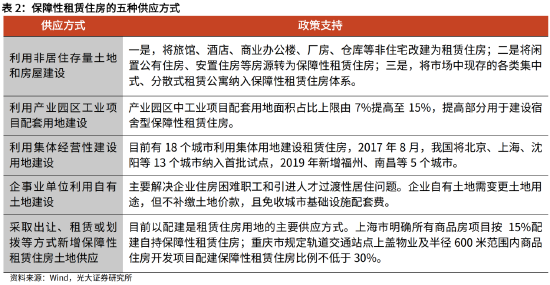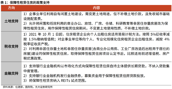 现阶段的保障性住房,包括保障性租赁住房、公共租赁住房、以及共有产权房,其中,保障性租赁住房是“十四五”期间保障性住房建设的主体。2020年10月,“十四五”规划提出,扩大保障性租赁住房供给。2021年,我国将40个城市纳入保障房试点,大力发展保障性租赁住房。2021年6月,国务院出台《关于加快发展保障性租赁住房的意见》,从土地、财税、金融等方面明确保障性租赁住房的支持政策。