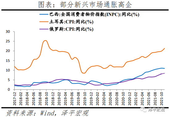 第二,新兴经济体在输入型通胀以及连续加息的背景下,经济活动受到抑制。以巴西、俄罗斯、土耳其为例,其三个经济体利率分别为9.25%、8.5%和14%,但与此同时CPI同比居高不下,11月CPI同比分别为10.96%、8.4%和21.31%。