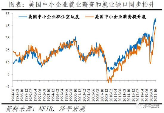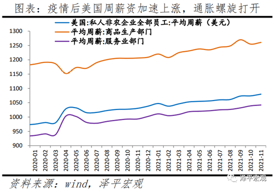 展望未来,我们认为以美国代表的海外国家CPI通胀表现:由能源分项向非能源分项迁移,由商品分项进一步向服务分项迁移。其中,自主就业意愿下降、年轻群体失业更严峻、中小企业用工缺口等问题很难在较短时间内得以解决,由物价变动传导至劳动薪资收入、再传导至物价的“物价-工资-物价”通胀螺旋被打通,即通胀会由商品部门向服务部门转移,同时会在疫情和供给缺口的客观约束背景下进一步加剧商品消费部门的通胀。
