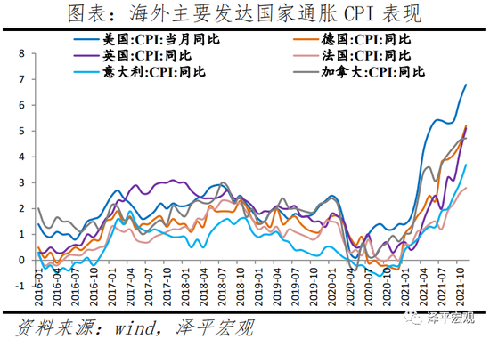 2021年大宗商品价格猛烈的上涨,是供求缺口、货币超发、限电限产、运动式减碳等多因素叠加的结果。2021年,ICE布伦特原油上涨51.5%,NYMEX天然气上涨47.62%,CRB商品指数上涨38.46%,LME铜上涨25.81%,ICE纽尔卡斯动力煤价格上涨98.7%。2021年美国PPI连续8个月位于5%以上高点,11月美国PPI高达9.7%,欧洲内部德国、法国、意大利PPI同比分别达19.2%、17.4%和22.1%,日本、韩国PPI同比分别达9.03%和9.6%。2020年11月全球居民部门通胀起势,到2021年10月欧洲、英国CPI同比达4.4%和4.2%,11月美国、法国、意大利CPI同比6.8%、2.8%和3.8%。