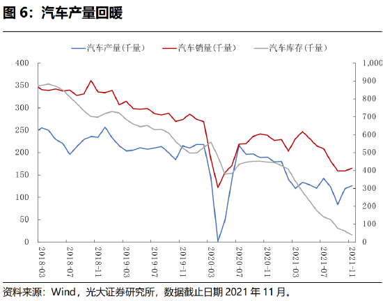 但需要注意,汽车供需失衡已有趋好迹象。12月汽车产量环比超过销量环比,并且,汽车销量在2021年4月达到24.7万辆之后,持续回落。向前看,汽车需求再次大幅上行的概率较低。另外,12月PMI供应商交付指数从11月的72.2%下滑至64.9%,连续两月下滑(指标越低说明交付时间越短),新订单小幅下行,客户库存有触底反弹迹象,同样也证明,供应链逐步好转。