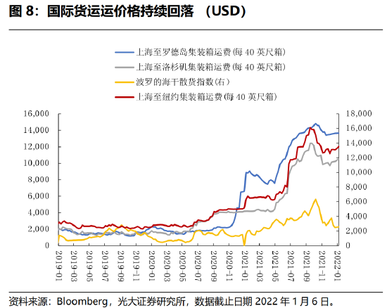物流运输方面,全球海运价格已经触顶回落,显示物流运输修复正在持续,边际缓解因商品短缺导致的价格上行压力。向前看,若高频数据持续趋好,新车和二手车价格持续上行的时间和空间都将有限。
