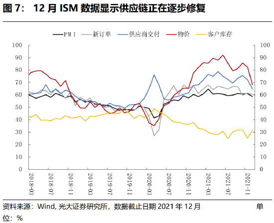 整体来看,从供应链和劳动力供需的角度出发,我们认为,通胀已经见顶,2022年一季度将进入筑顶阶段,不会导致美联储加速加息。