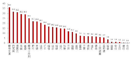 图1:2020年底G-SIBs表外衍生品名义本金规模(万亿欧元)