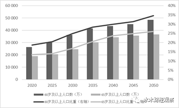 到2035年前后,我国65岁及以上人口占总人口比重将达到约21%,进入“超老龄社会”。从老龄人口的绝对增量来看,2020到2035年我国60岁及以上人口规模将增长大约1.5亿,65岁及以上人口规模将增长大约1.1亿,平均每年分别增加1千万和743万。