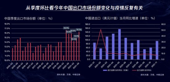 从季度管理来看,2021年的中国出口市场份额也出现了一些波动,而且这个波动跟疫情的反复有关。