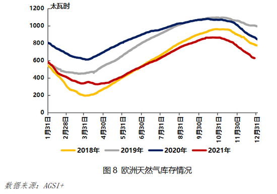 欧洲天然气短缺为美国LNG出口提供绝佳机会。目前俄罗斯输往欧洲的天然气管道主要有8条,其中输往德国的亚马尔管道于去年年末改变了流向,另外3条途径乌克兰的管道受当前乌东局势影响也存在较强不确定性。欧洲天然气库存高频数据显示,当前库存水平依旧难改下降趋势,处于历年低位。这意味着,在俄乌矛盾激化的当下,欧洲必须寻求更多LNG货源以缓解自身的能源危机。鉴于降温预警和电力供应紧张,欧洲天然气供应压力短期内恐怕无法缓解,这为美国扩大市场份额提供了黄金窗口期。