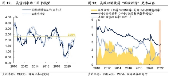 就美债利率而言,目前的利率水平可能已接近阶段高位,主要原因有三:①历史上来看,10年期美债利率中长期顶点与联邦基金利率阶段顶点水平相当;②历轮加息周期开启前,美债利率的阶段性上行就已经基本到位;③“五因子”模型显示,今年年中美债利率高点或将在2.30%左右。