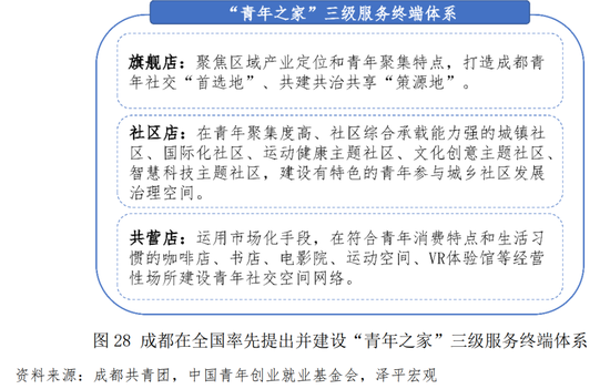 优化“一站式”服务、加强青年安居保障、搭建青年交流平台。“一站式”服务方面,成都推出青年创新创业孵化载体聚合平台,为青年创业政策申请提供“一站式”服务接口,包括整合各类金融扶持政策、组建“星导师”团队提升创业者的管理和经营水平、满足青年创业项目合伙需求等。平台首批上线337家孵化场所,累计链接85.54亿元资金池。青年安居方面,成都构建全面覆盖、租售补并举的青年人才安居服务体系。对符合条件的来蓉青年,政府在其购买人才公寓时给予政策面积8.5折的优惠;建设青年驿站,为外地来蓉求职应聘的本科及以上学历青年大学生提供7天免费住宿,截至2021年底,成都累计建成青年驿站23家、床位800余个,累计服务5.58万人。青年交流平台方面,成都打造“15分钟青年社交圈”,率先提出并建设青年之家旗舰店、社区店、共营店三级服务终端体系,截至2021年底,成都建成青年之家1031家。