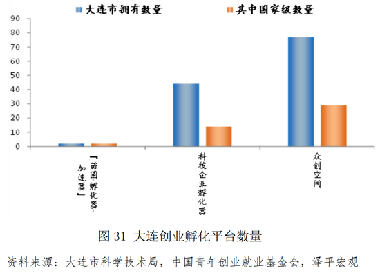 大连作为东北地区经济发展较好的城市之一,辽中南城市群的核心城市,创新创业载体建设成效明显,拥有3个区域类国家级双创示范基地,数量占辽宁省50%。大连作为国务院确定的中国北方沿海重要的中心城市和港口,东北地区经济发展较好的城市之一,叠加扶持创新创业的政策力度大,创新创业载体建设成效明显,2020年大连经济技术开发区和甘井子区获批国家第三批双创示范基地,大连已拥有区域类国家级双创示范基地3个,数量占全省50%。