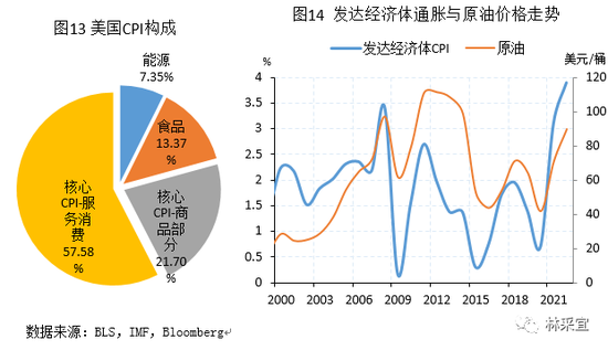 根据美国劳工部公布的最新美国CPI结构,能源价格占CPI构成权重在7.35%,考虑到其他项目(如食品生产中的原油成本,核心CPI中商品生产成本受能源价格的影响)中的间接影响,实际能源价格波动对CPI影响会更大。
