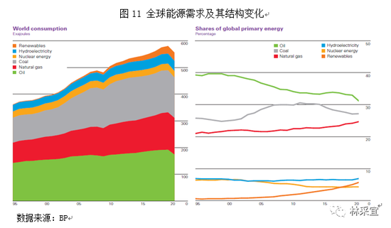 此外,绿色能源对传统能源的替代也是影响原油供求关系的一个重要因素。数据显示,过去十年,虽然可再生能源的资本投入在不断增加,但其年所能提供的增量能源供给最多只能覆盖3/10的能源增长需求(全球总的能源需求增量10艾焦耳/年,即使以21年的10%的可再生能源资本增量投入来测算,也仅能增加3艾焦耳/年供给增量)。可见仅仅靠可再生能源的增长难以满足能源消耗的增长需求,因此,对传统能源的需求短期内仍然呈现增长态势。
