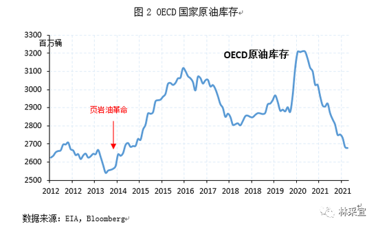 从过去两年的数据来看,OECD国家原油库存一直处在快速下降状态,目前库存水平已低于页岩油产量大幅增长的2014年。