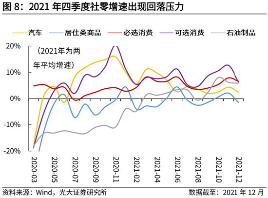 两会在消费领域所做的部署,与我们在地方两会中所观察的一样,均指向绿色消费。一方面,政府工作报告提出,在“多渠道促进居民增收”基础上,进一步提出了“完善收入分配制度”。另一方面,在消费重点领域方面,2022年政府工作报告延续了近期国家各部委文件中对绿色消费的高度重视,指出“继续支持新能源汽车消费,鼓励地方开展绿色智能家电下乡和以旧换新”。此外,2022年政府工作报告还针对消费新业态发展、养老、托幼等配套设施建设、农村电商和快递物流配送等重点领域做出了部署。