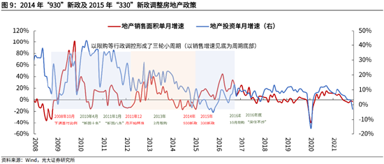 从调控政策放松传导到投资企稳,需要半年左右,预计年内房地产投资将呈现“前低后高”的走势。复盘上一轮房地产调控,2014年“930”新政和2015年“330”新政调整了地产政策后,2015年上半年全国房地产销售面积增速回升,下半年房地产开发投资增速企稳。随着今年房地产政策自下而上的放松持续推进,预计年内房地产投资也将呈现“前低后高”的走势。