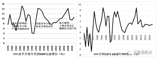图1 改革开放以来中国的三波GDP及TFP高速增长