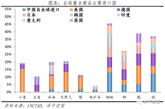 3)国际大宗品价格上涨,间接扩散至全球经济体通胀。以美国为例,美国是煤、天然气的净出口国,石油、钢铁、有色金属的净进口国,石油、钢铁、有色金属价格上涨都会引发美国输入型通胀。