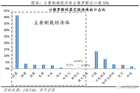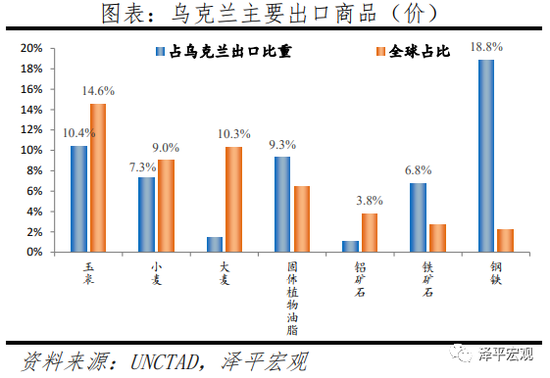 俄罗斯和乌克兰贸易总量在全球贸易份额并不大,但由于出口结构多为资源和农业,因此在结构上的影响远大于总量。若冲突持续,或带来全球贸易、航运受阻,对全球贸易产生更大的影响。2020年俄罗斯贸易总量5726亿美元,占全球贸易总量的1.6%;乌克兰贸易总量1031亿美元,占全球贸易总量0.3%;对结构的影响大于总量。