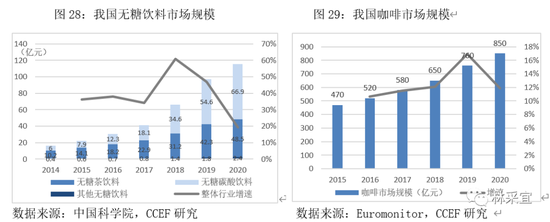 3.咖啡,无糖茶饮及无糖碳酸饮料等无糖饮料成为饮品新宠