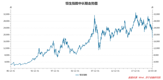 恒生指数是香港市场最具代表性的指数,于1969年11月24日推出,指数基日追溯至1964年7月31日,基日值为100。基日至今(2022年3月18日,下同),恒生指数累计上涨213倍,年化涨幅为10.91%,近三年表现较差,年化跌幅为10.14%。