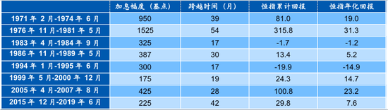 1970年以来,美国共经历了8个加息周期,港股在其中6个周期中录得正回报,平均年化回报为10.6%(表2)。在1970-80年代迫于通胀压力的三次加息周期中,港股平均年化回报竟然达到16.4%。因此,至少从历史数据来看,港股并不惧怕基于通胀压力的加息与流动性紧缩。