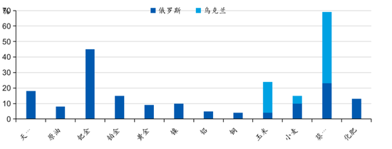 图3:俄罗斯与乌克兰占全球大宗商品生产的比例