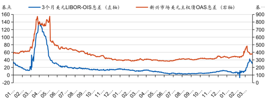 图7:离岸与在岸美元融资价差(LIBOR-OIS息差)